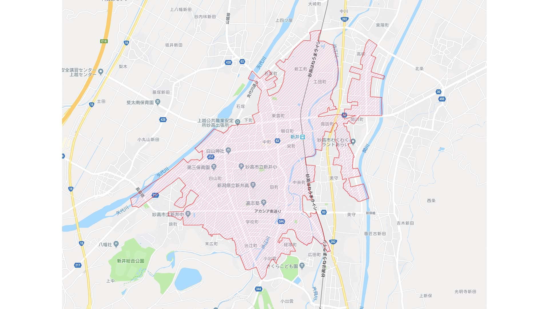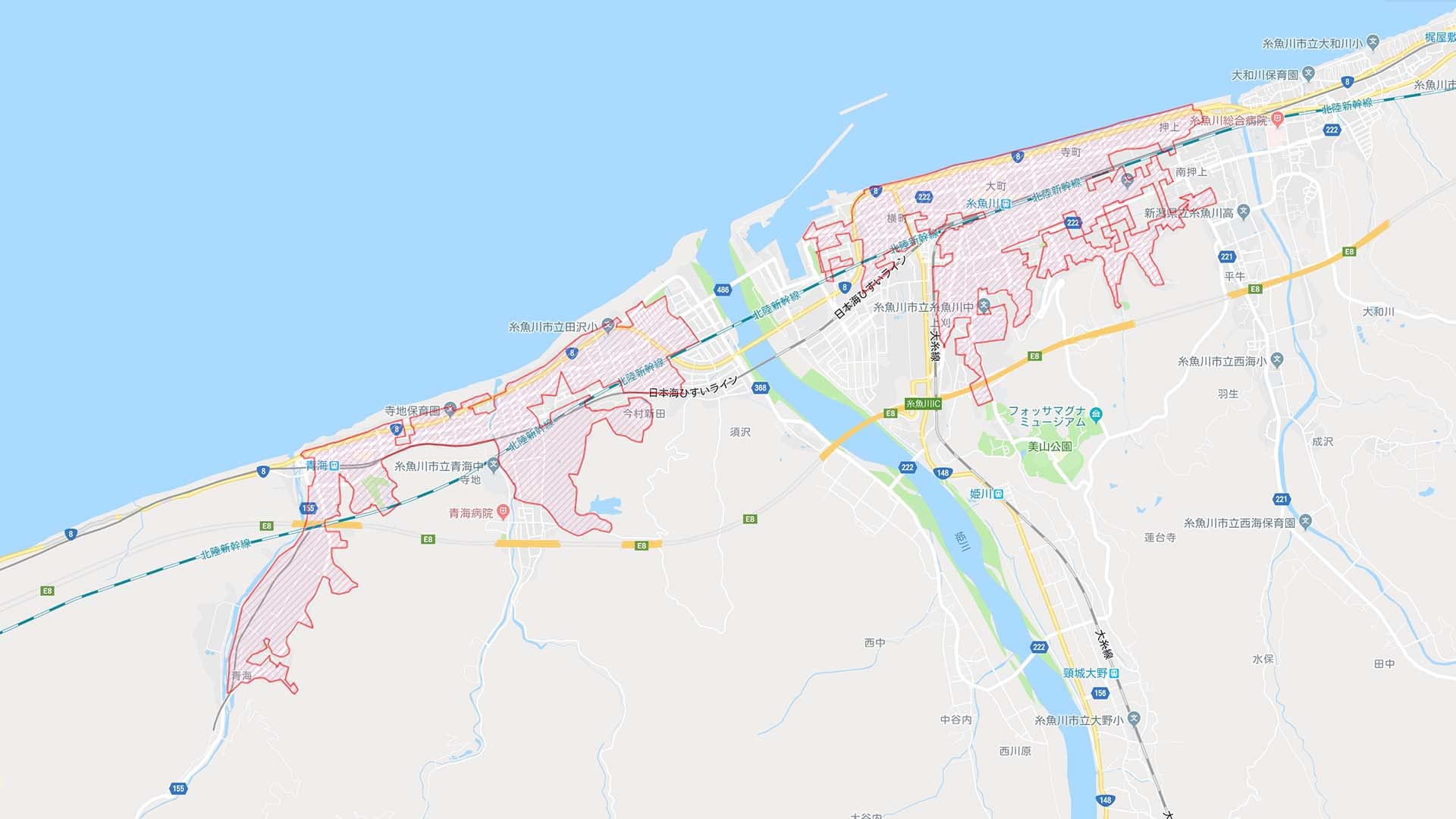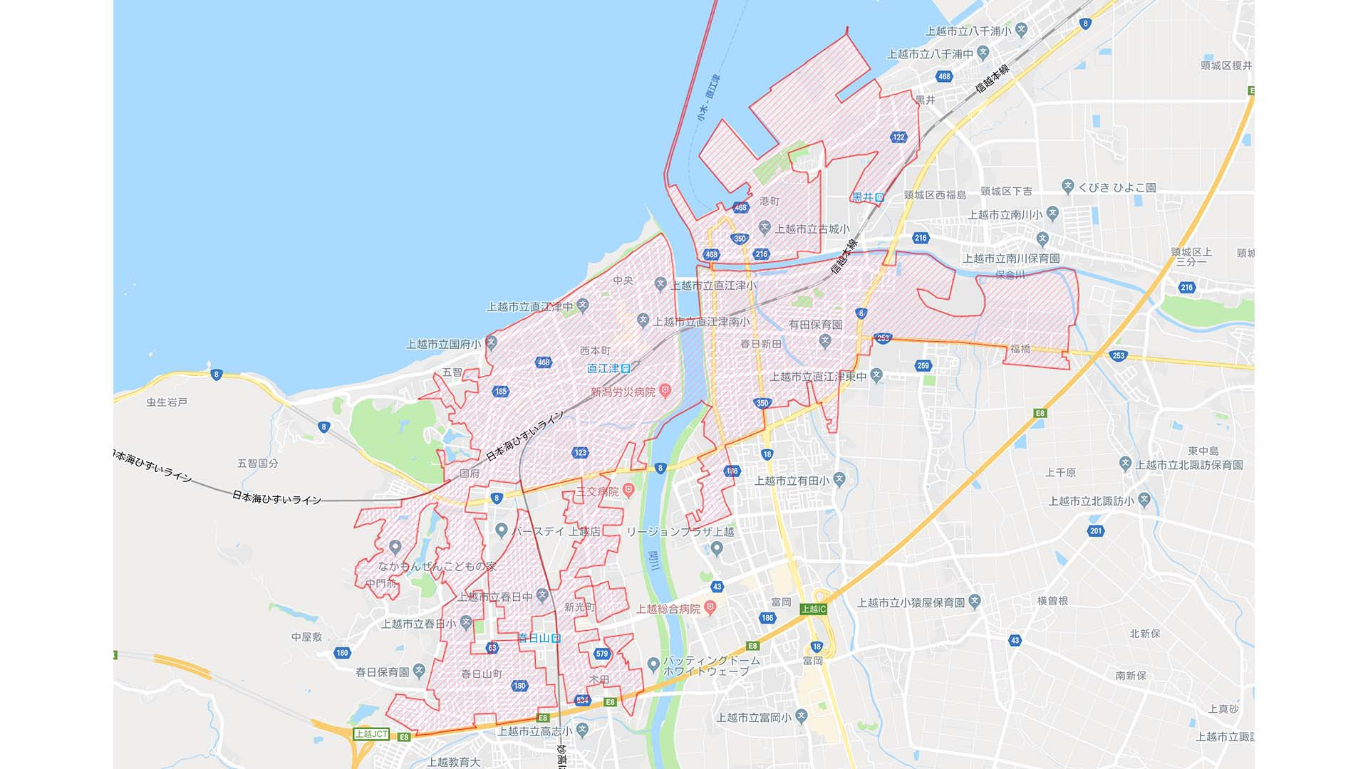 地図の赤いエリア内が人口集中地域となり、原則飛行が禁止されています。
